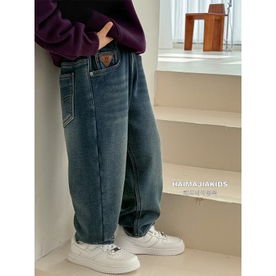 Boys' fleece jeans winter new style children's trousers winter Korean style pants thickened children's clothing