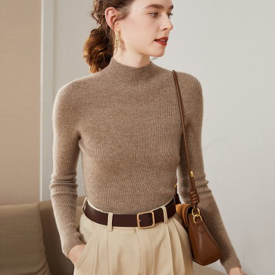 Half turtleneck sweater for women 100% pure wool slim fit base sweater